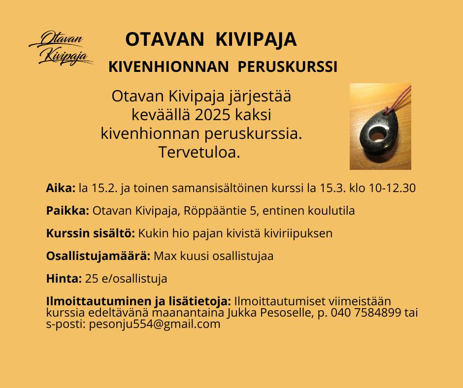 Otavan kivipaja järjestää keväällä 2025 kaksi kivenhionnan peruskurssia. AIka: Lauantai 15.2 ja toinen samansisältöine kurssi Lauantai […]